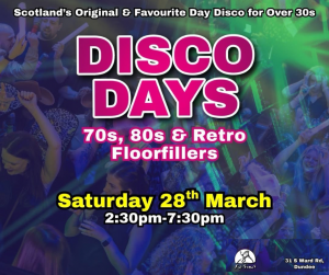 🪩 Who’s ready for a proper daytime boogie and a massive sing along to the greatest hits of yesteryear? 🙋♀️🙋🙋♂️ Disco Days is back in Dundee on Saturday 28th March 🎉